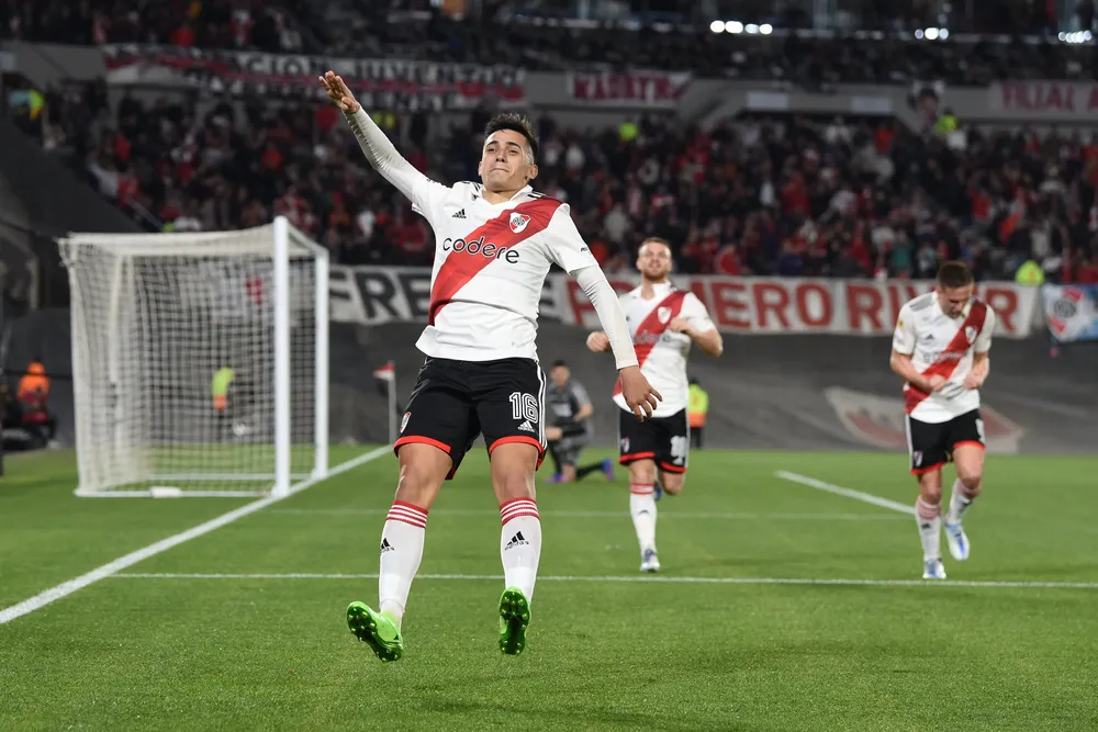 El sábado, Pablo Solari celebró de la misma manera, tras convertir los dos primeros goles de River en la victoria 4-1 ante Newell´s de local.