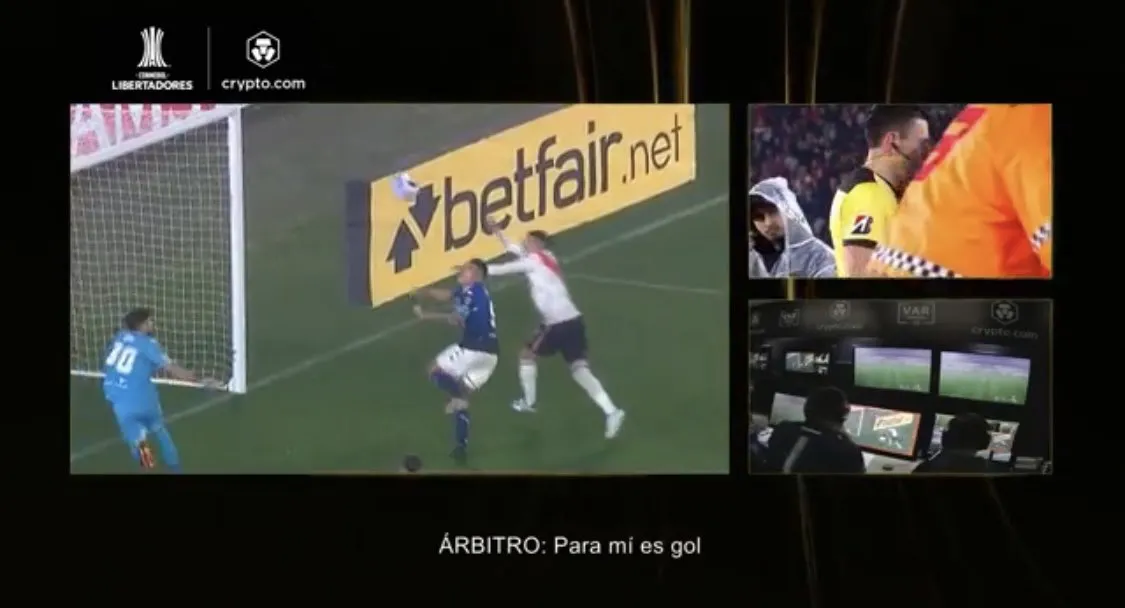 Se publicaron los audios con el VAR y los mismos muestran al árbitro chileno convencido de que era gol para el Millonario.