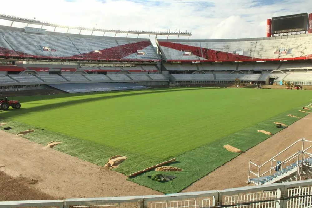 Las lonas se utilizarán para dar mayor visibilidad a los sponsors del club y para que la imagen del estadio se vea mejor en la transmisión de los partidos. Además, ya están funcionando las maquinas de cosido. La instalación de un 5% de césped sintético hará que el campo de juego tenga una mayor resistencia y que los jugadores no noten la diferencia.