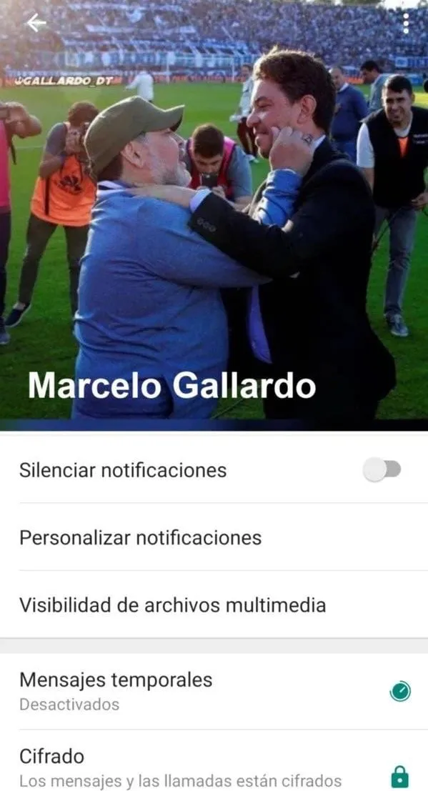Hace poco, Diego y el Muñeco coincidieron cuando se enfrentaron en La Plata Gimnasia y River. Allí se dieron un eterno abrazo que fue inmortalizado por los fotógrafos. Justamente esa imagen puso Gallardo en su Whatsapp para homenajear a Diego Armando Maradona.