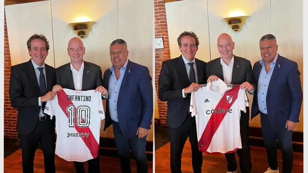 El jefe del organismo que rige el fútbol a nivel mundial, Gianni Infantino, se mostró con la casaca del Millonario y su apellido estampado en la espalda.