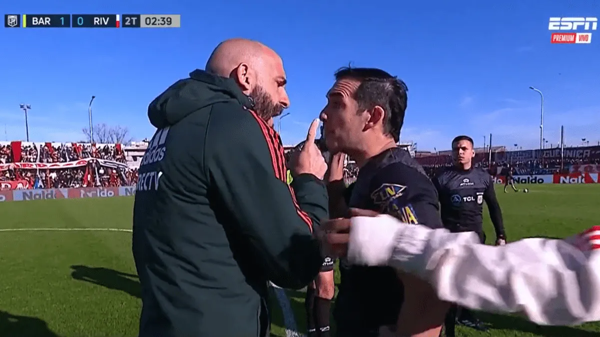 Al final del primer tiempo ante Barracas, el ayudante de campo tuvo una fuerte discusión con el asistente y se fue expulsado. Mirá el video de la pelea.
